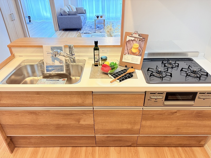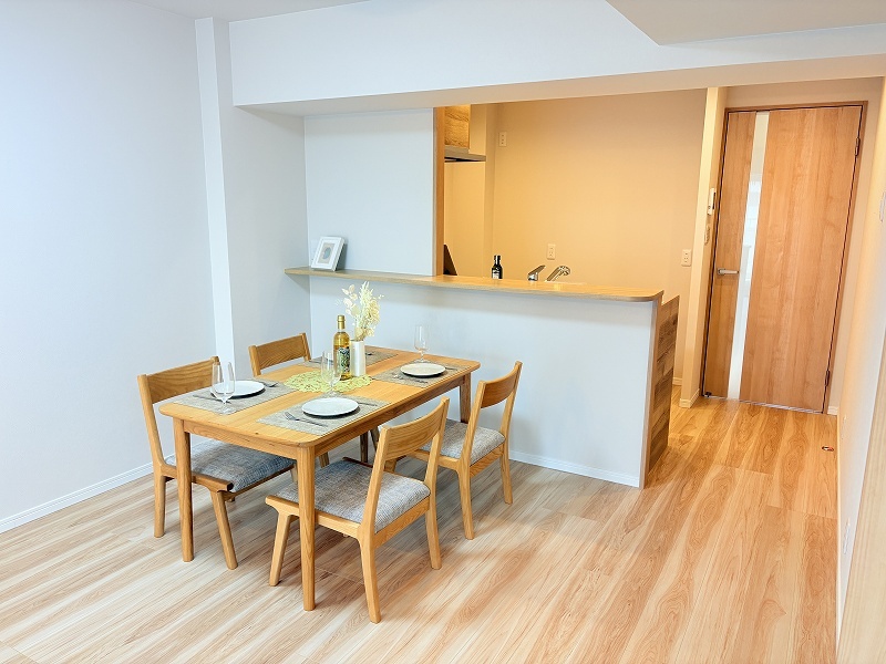 ダイニングとキッチンが美しくつながるレイアウトにより、家族やゲストとの会話が自然に生まれる、心地よいひとときを演出します。写真では伝わりきらない空間の質感と心地よさを、ぜひ現地でご体感ください。