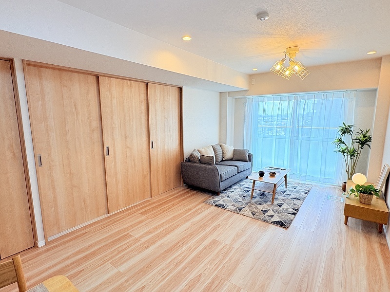 東南角部屋で日当たり良好、明るく開放的な室内空間で過ごせます。