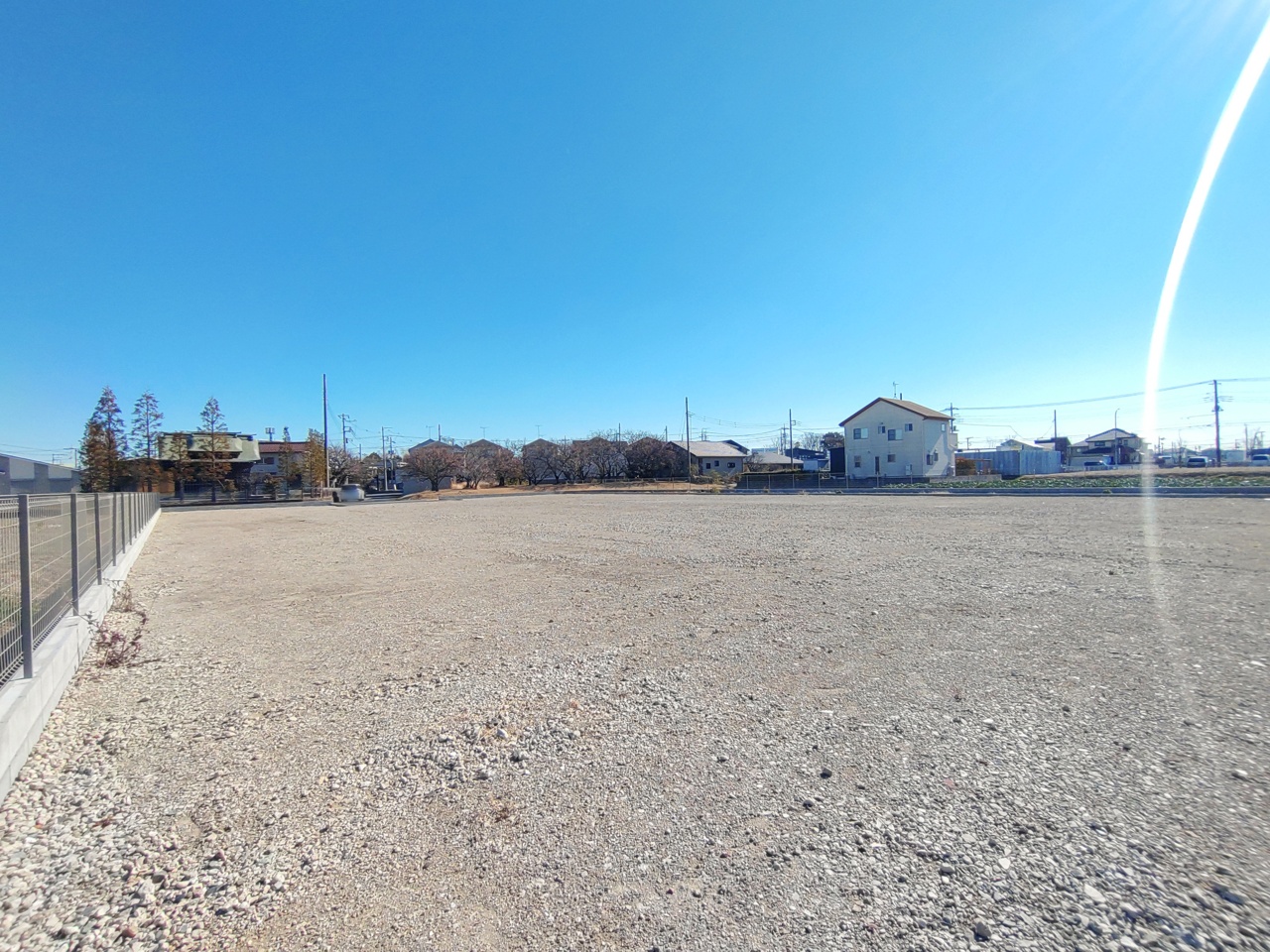 前面道路幅員8メートル。間口も8メートルあり、大型トラックの駐車場や、資材置き場に最適です。