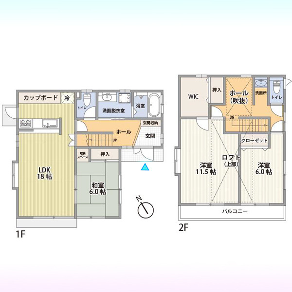 | 間取 | 3LDK (LDK18帖、和室6帖、洋室11.5帖、洋室6帖) | ||