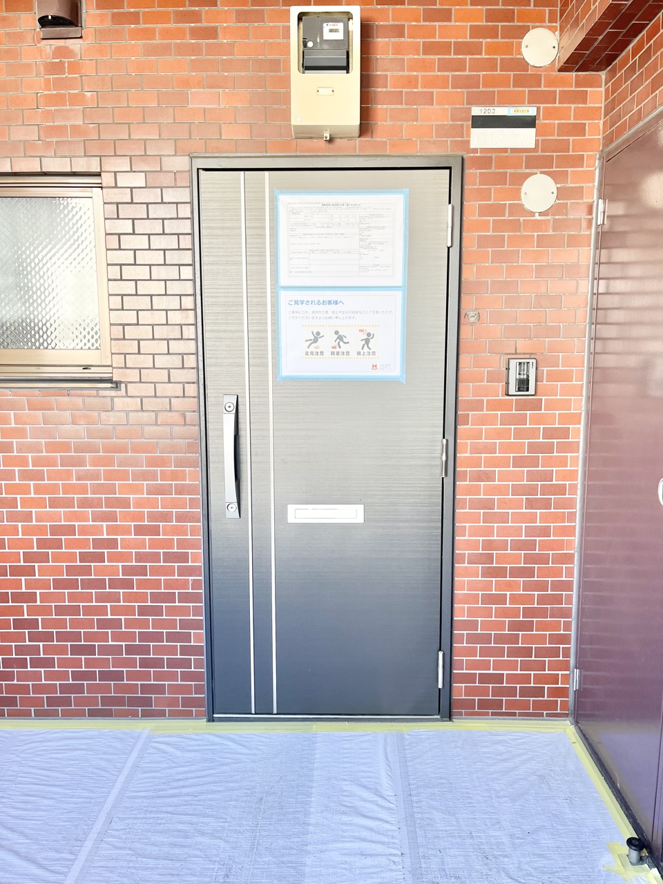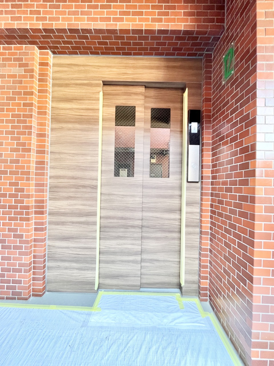 温かみのある木目調の扉とレンガ造りが、趣あるエントランスを演出