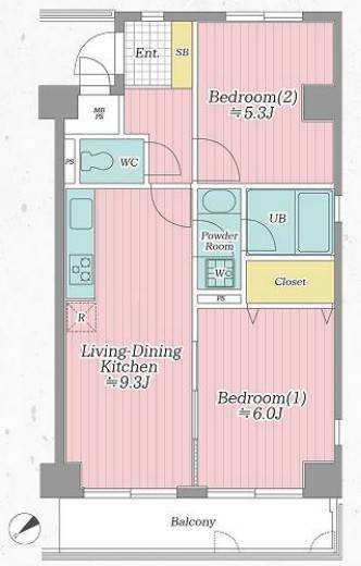 | 間取 | 2LDK (LDK9.3帖、洋室6.0帖、洋室5.3帖) | ||
