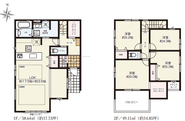 | 間取 | 4LDK (LDK21帖、洋室9帖、洋室5.3帖、洋室5.2帖、洋室4.3帖) | ||