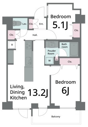 | 間取 | 2LDK (LDK13.2帖、洋室6.0帖、洋室5.1帖) | ||