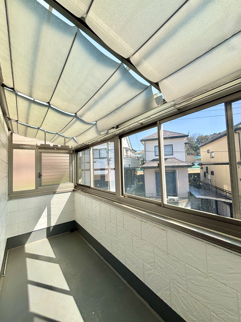 屋根つきのバルコニーは、安心の扉付きで雨風がしのげます。