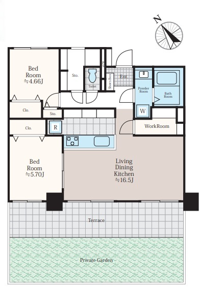 | 間取 | 2LDK+WIC (LDK16.5帖、洋室5.7帖、洋室4.6帖) | ||