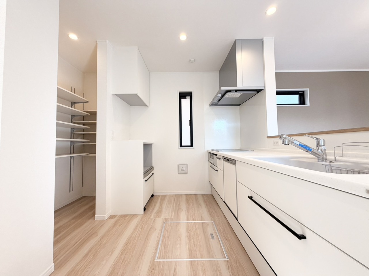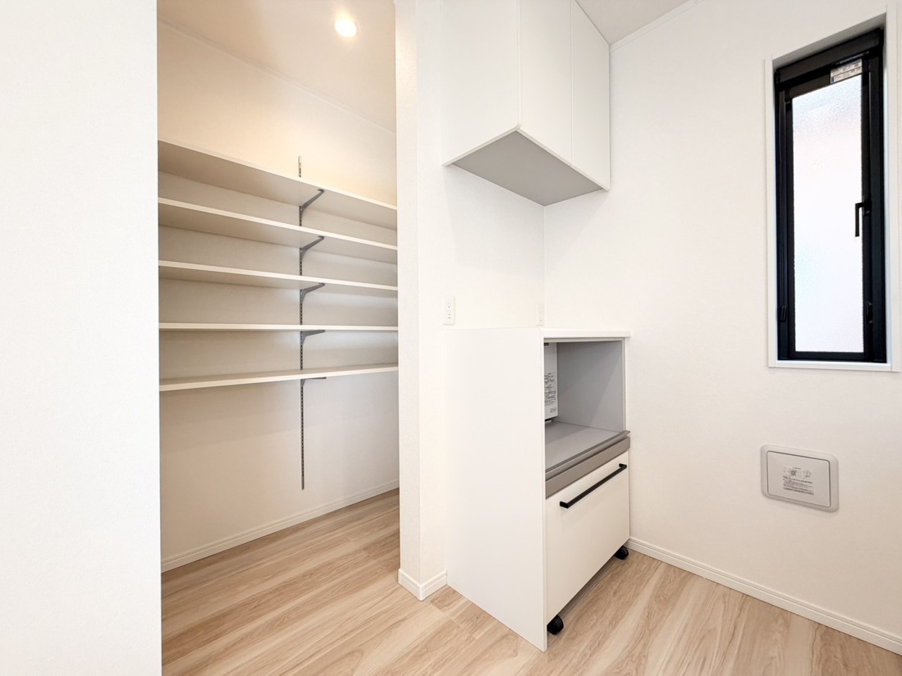 キッチン裏の空間もしっかり確保。カップボードも大きなものを置けそうです。