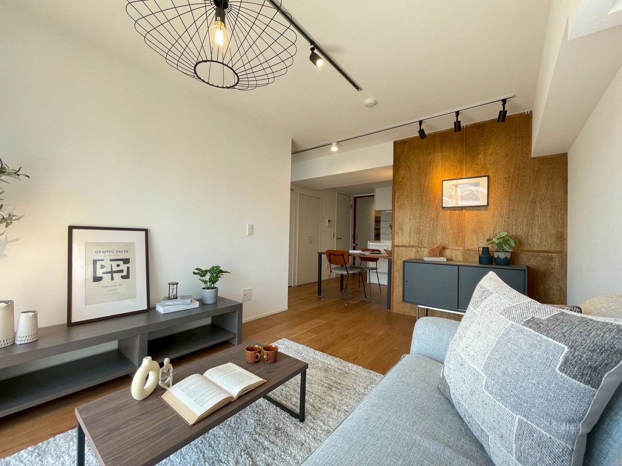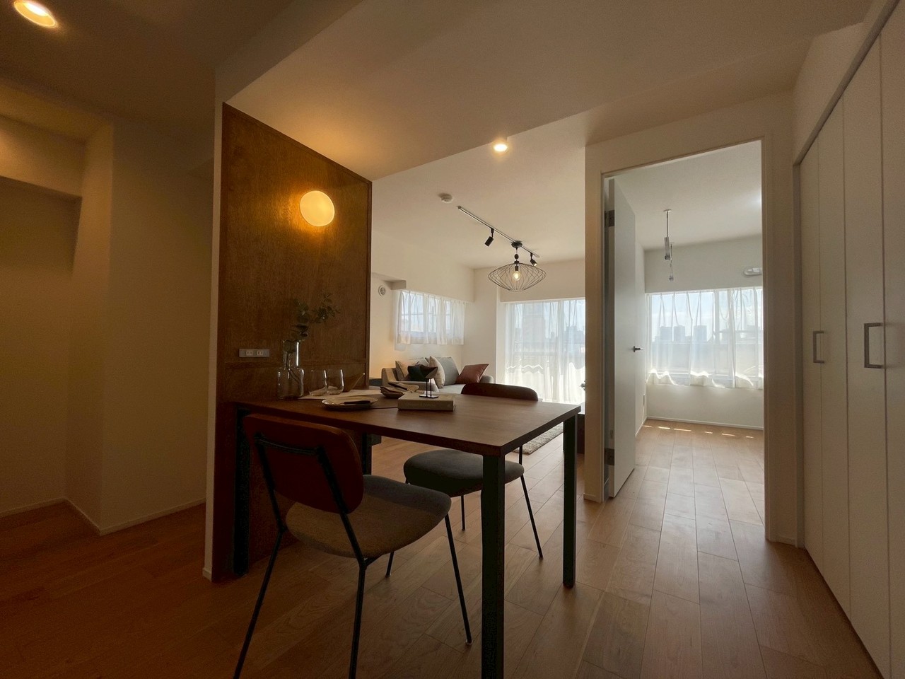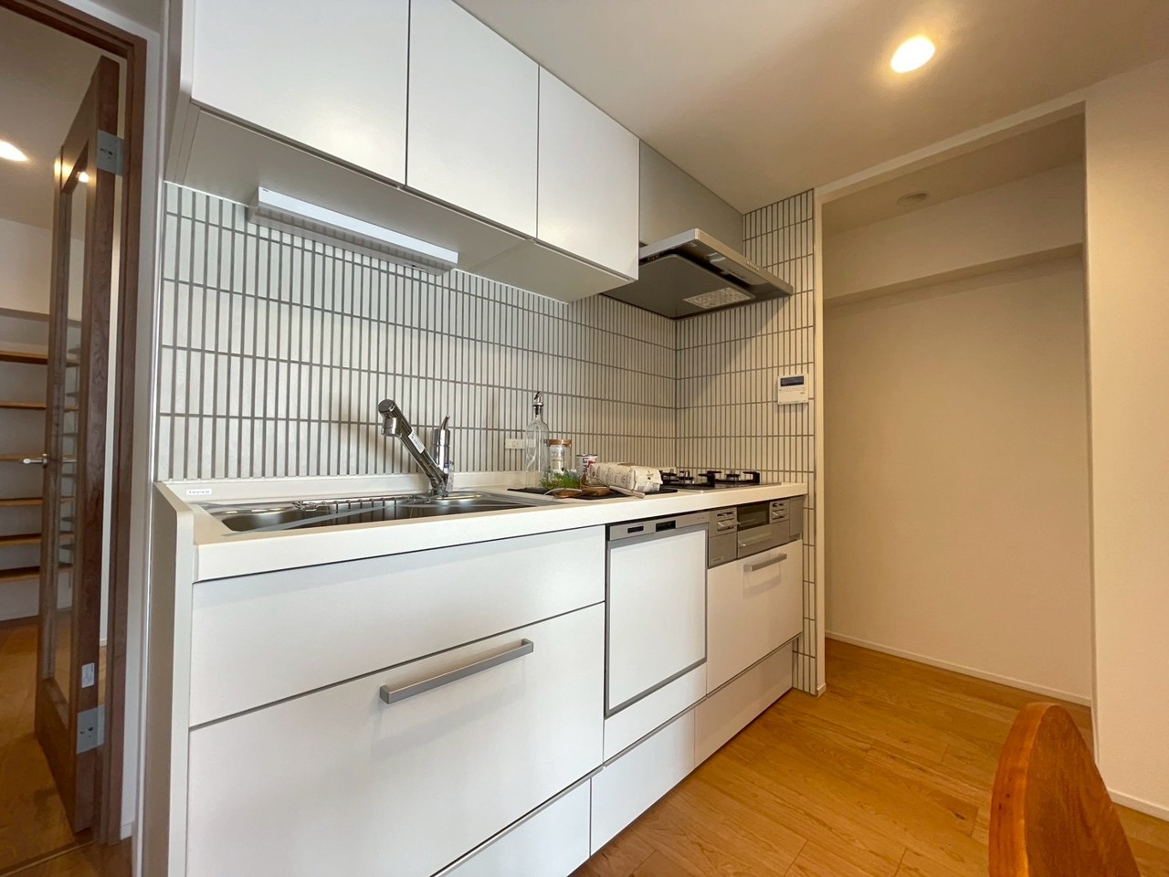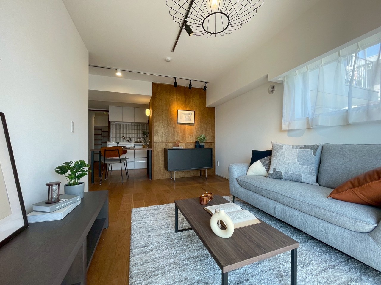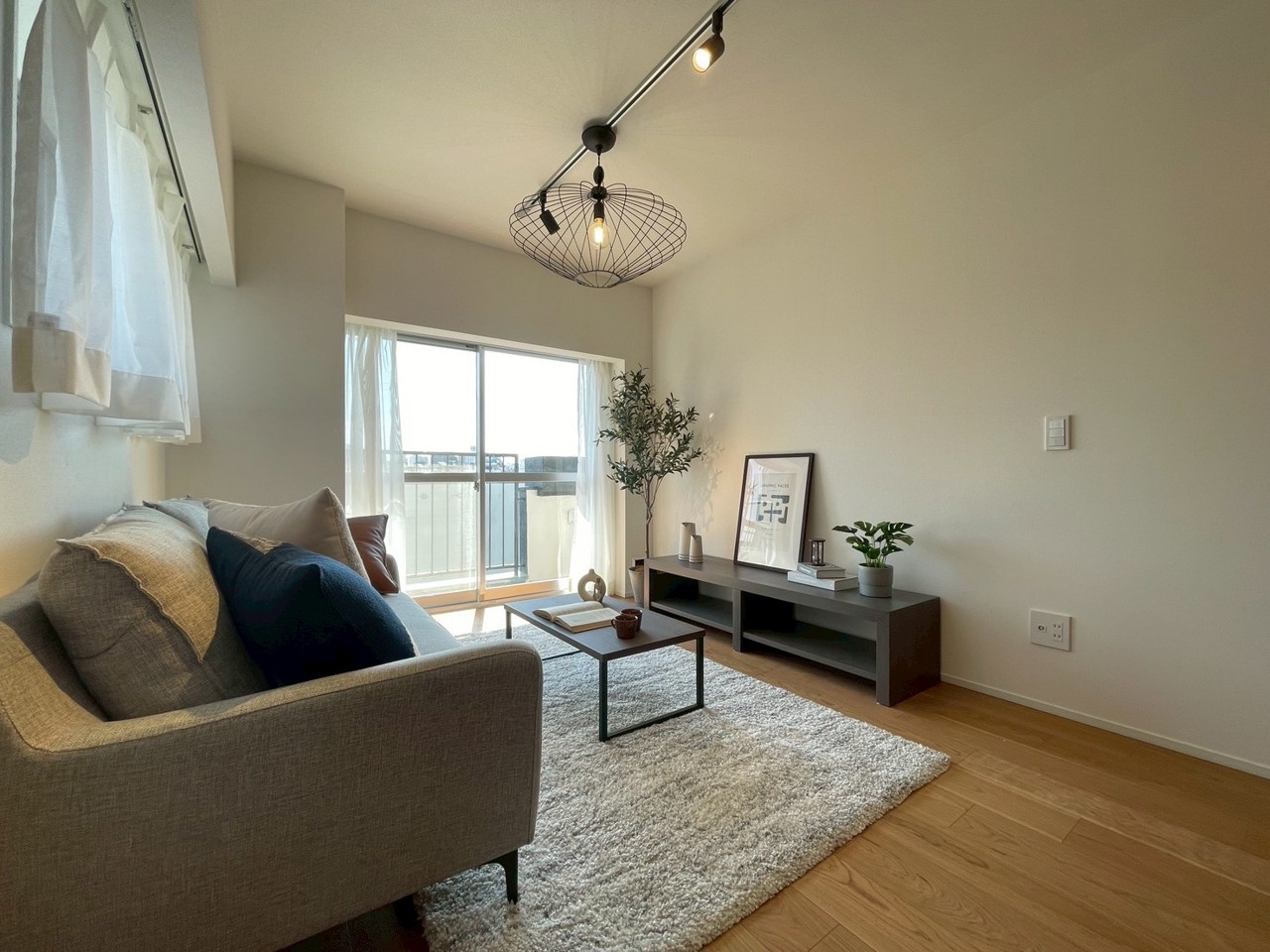 南向きの角部屋住戸、室内リノベーション住戸。室内の色数を限定し洗練された印象の室内、食洗器など設備も充実せてます。
