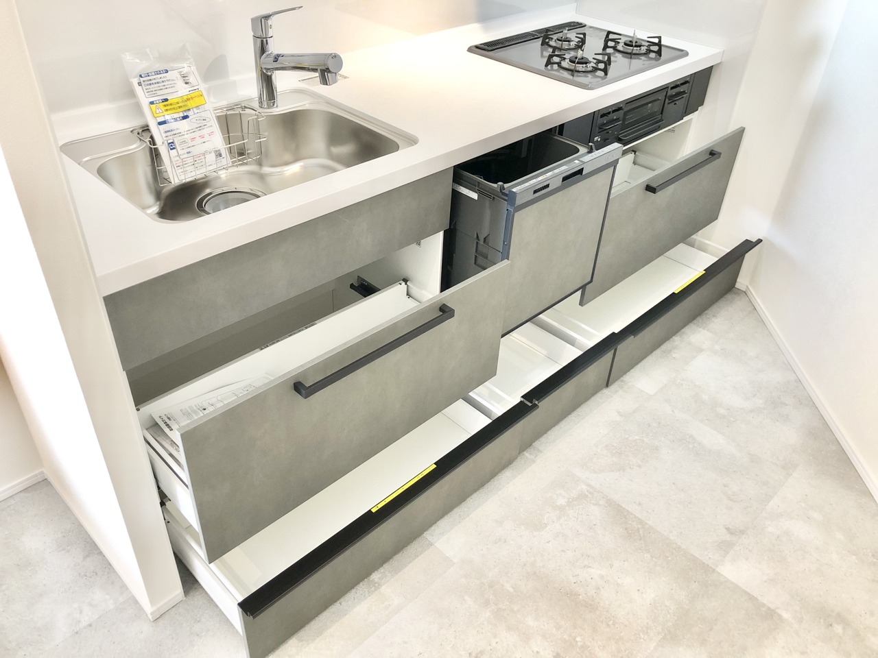 リビングで遊ぶお子様を見守りながらお料理ができる、対面キッチン。
