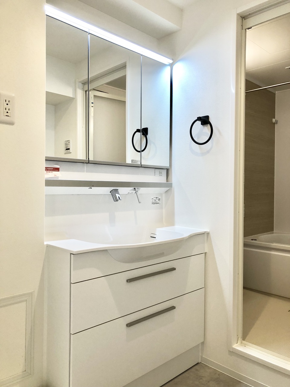 洗面化粧台は清潔感の漂うホワイトをベースカラーに、シンプルなデザインで。