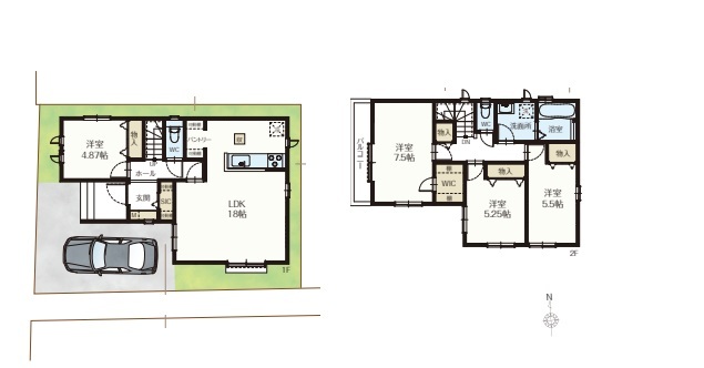 | 間取 | 4LDK (LDK18帖、洋室7.5帖、洋室5.5帖、洋室5.25帖、洋室4.87帖) | ||