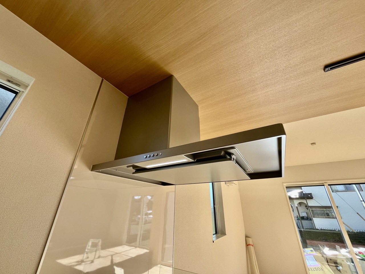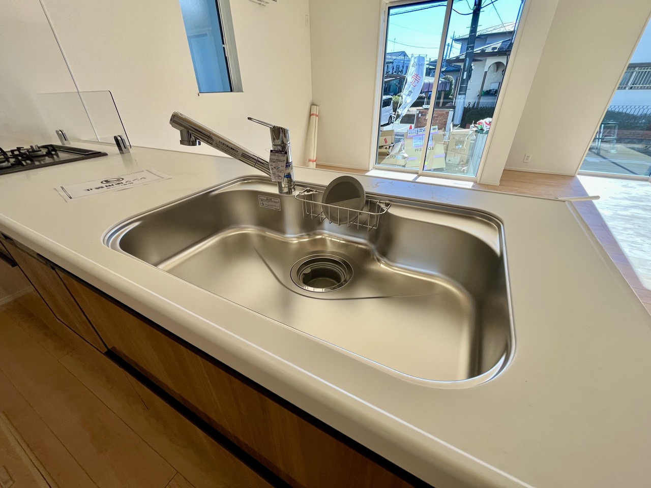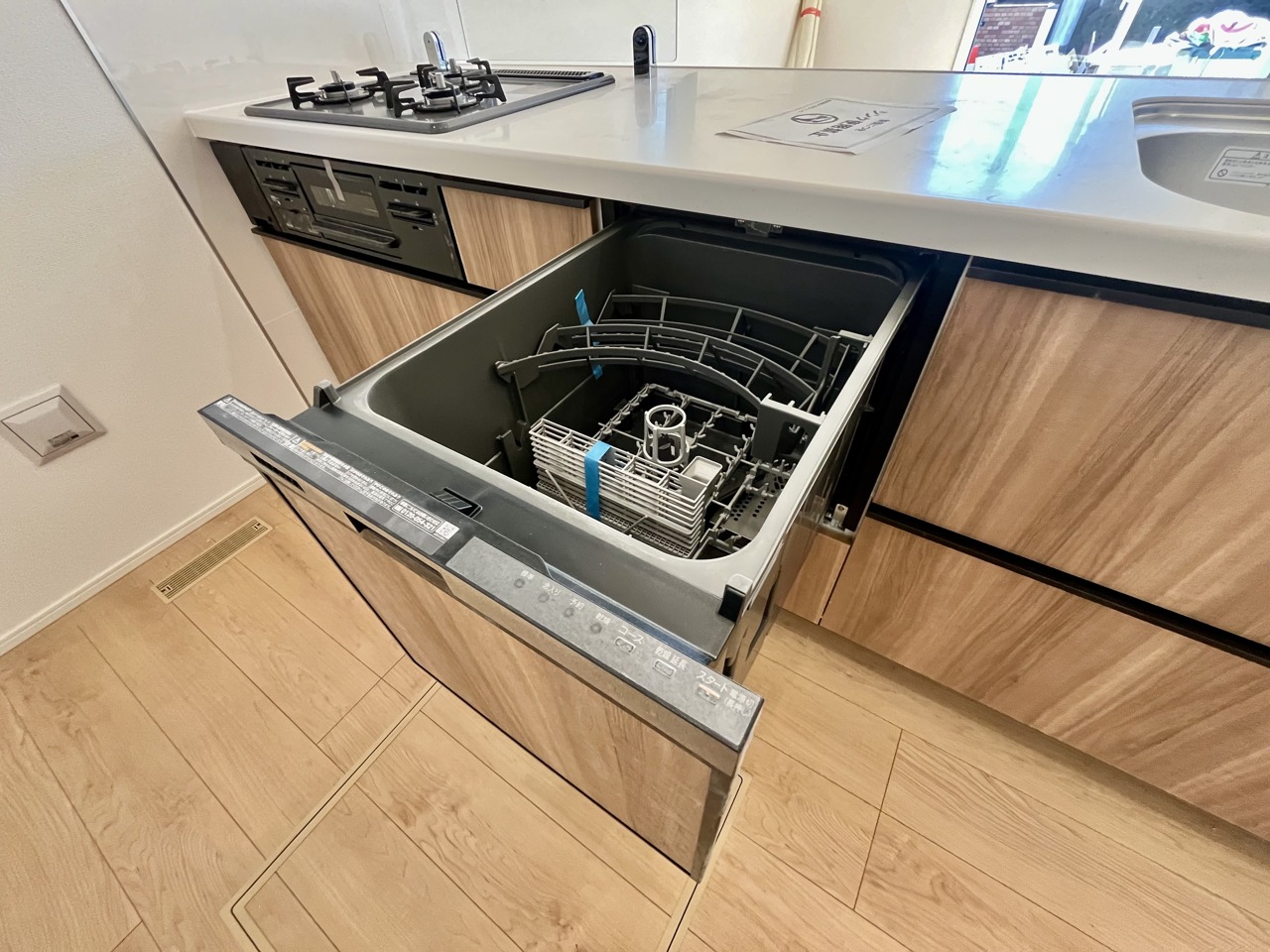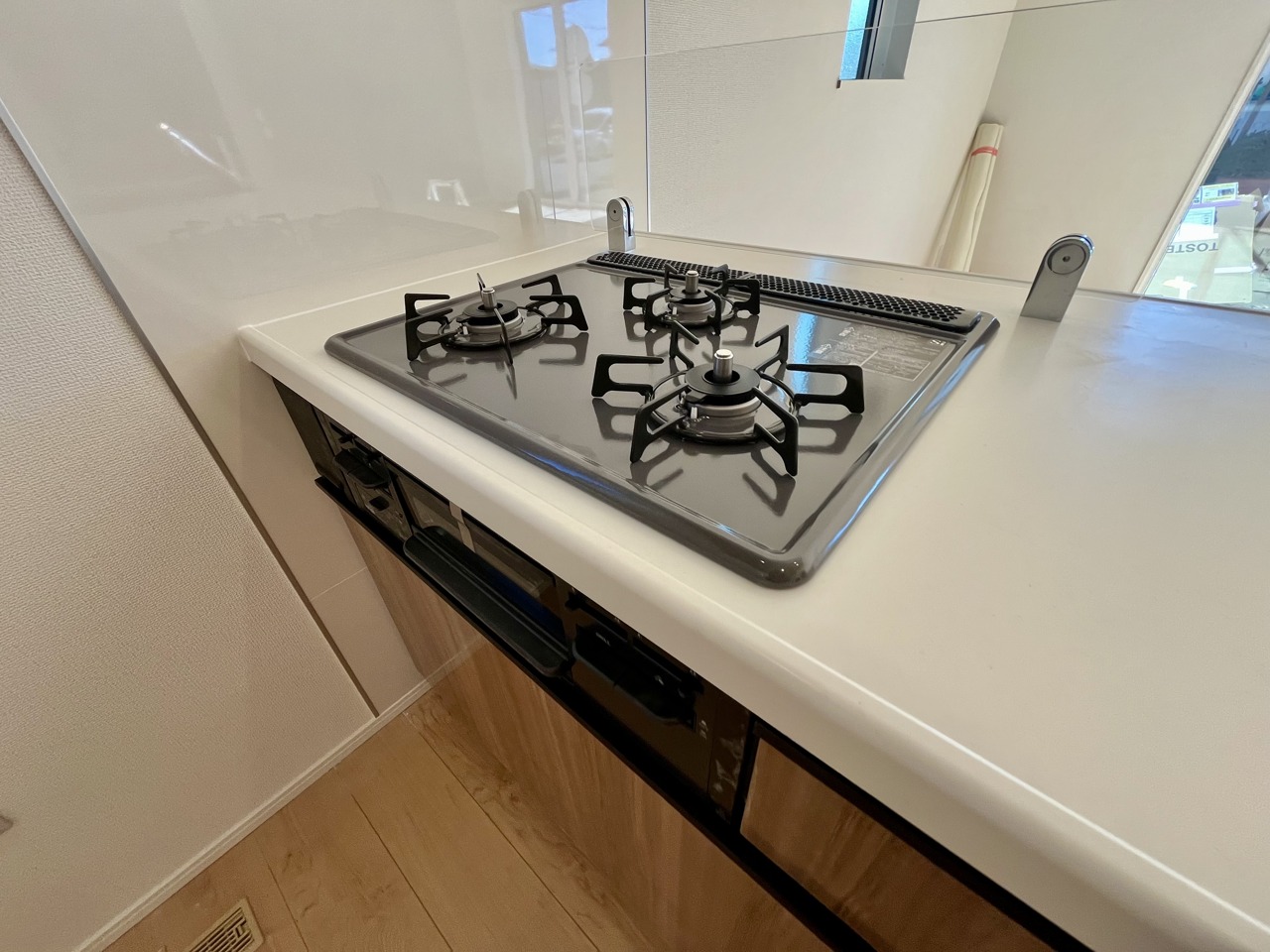 リビングにいる家族の顔が見渡せるカウンターキッチン。お料理もより一層おいしく、楽しく。食器棚を背面に設置しても十分な広さを確保しています。