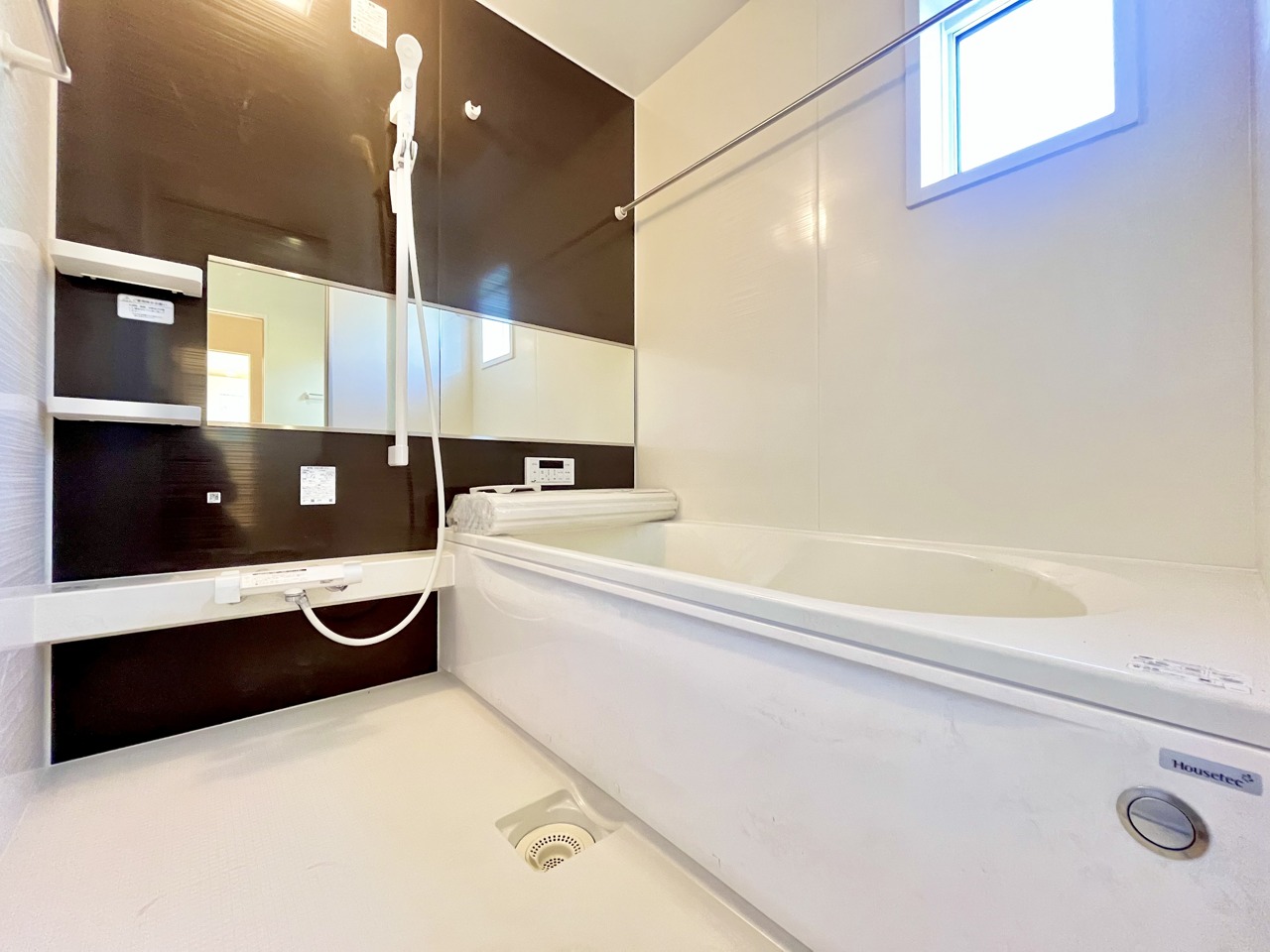 落ち着いた色味の浴室で1日の疲れをゆっくりと癒してください。