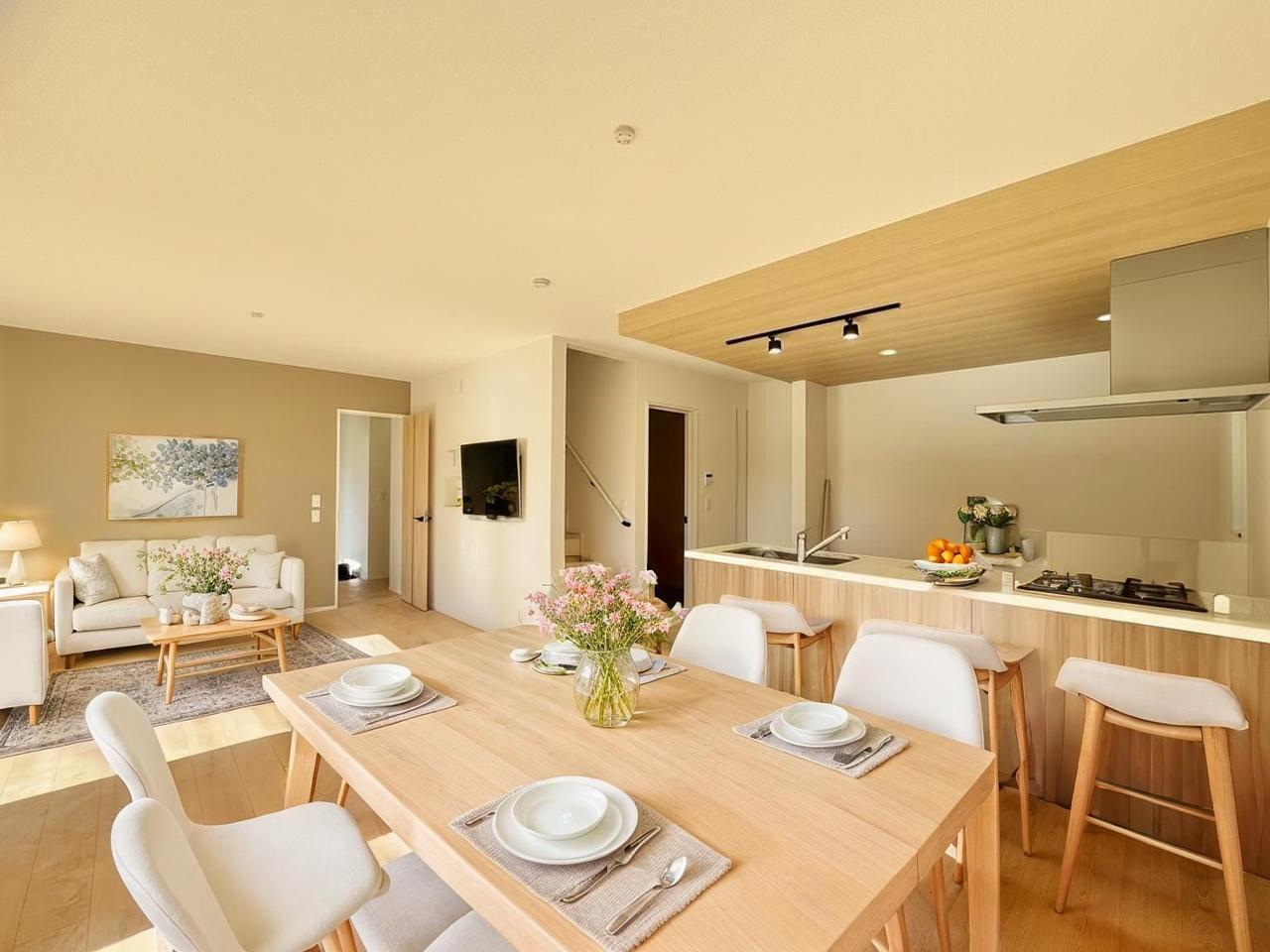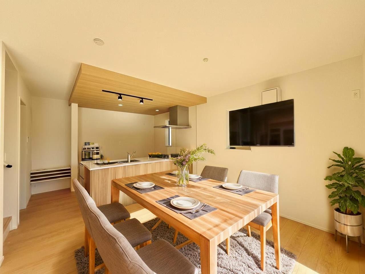 家族や友人、両親、親戚とこれから沢山の時間を紡ぐのだろう。そこを彩るのは窓から見える青い空、心地よい緑。そんなイメージが膨らむリビングスペース。