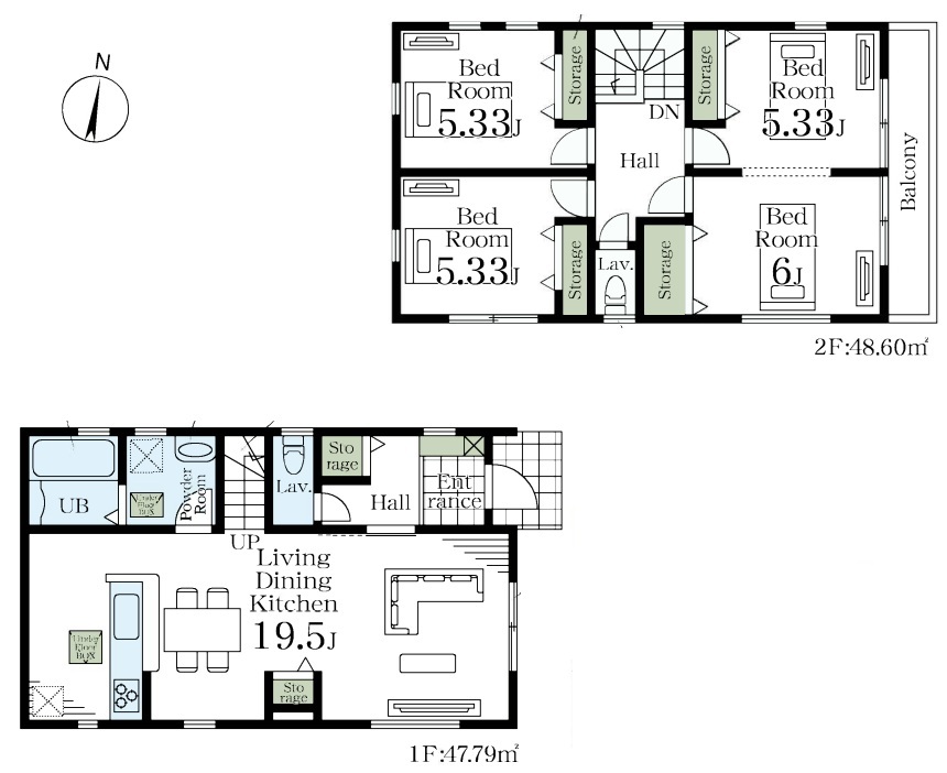| 間取 | 4LDK (LDK19.5帖、洋室6帖、洋室5.33帖、洋室5.33帖、洋室5.33帖) | ||