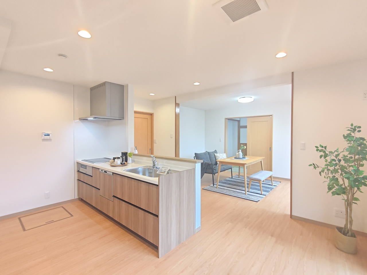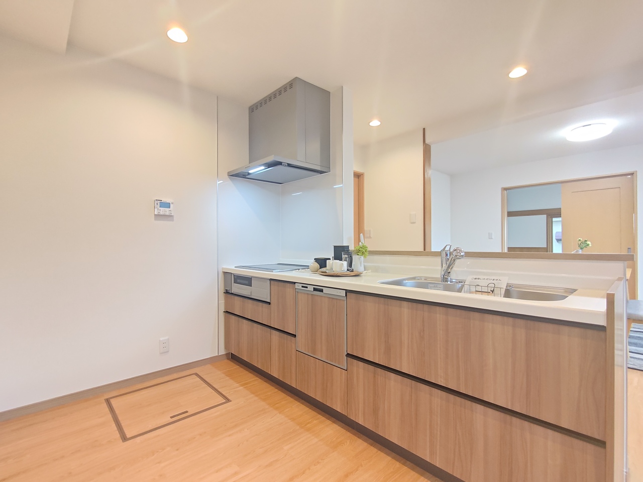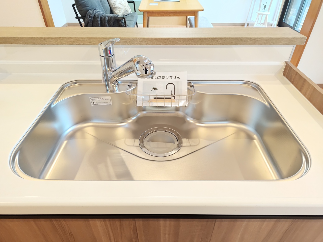 対面式のシステムキッチン。 調理しながらでも家族の様子を見守れる為、子育て世帯にもオススメです。