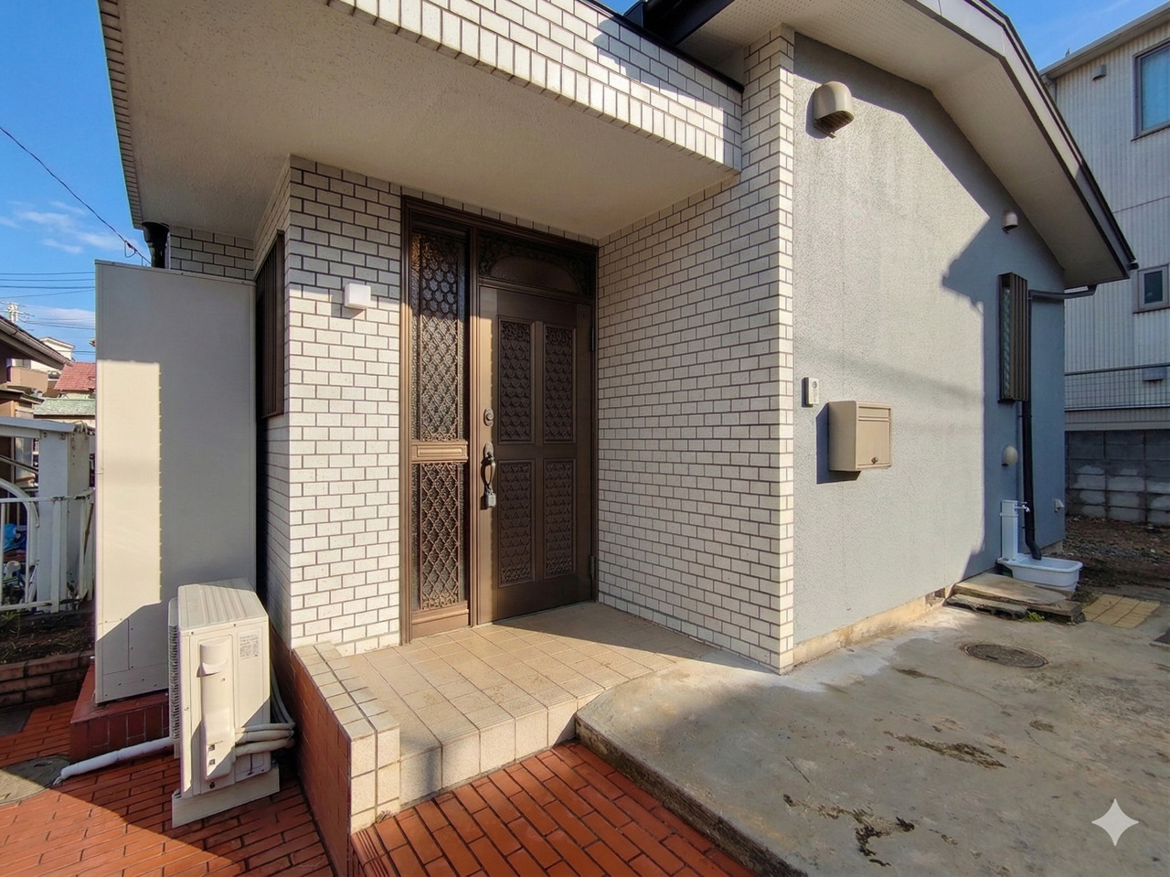 ダブルロック仕様の玄関ドア。 庇が玄関入口を雨から守ります。