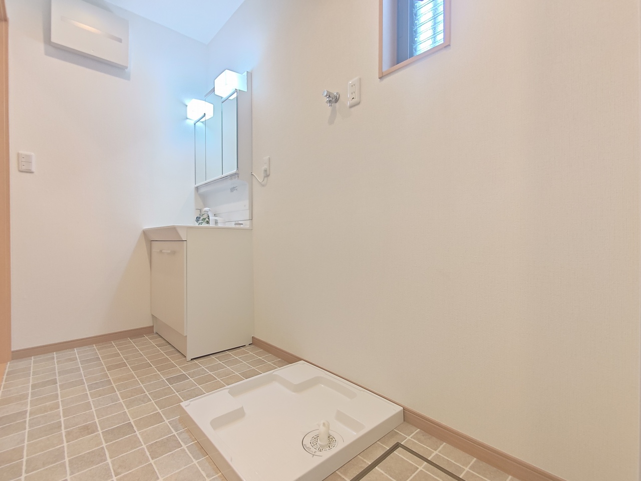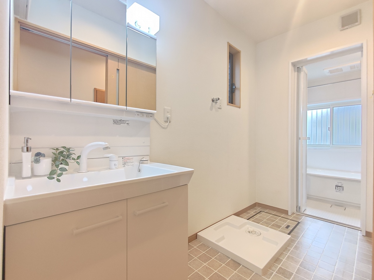 しっかりと広い洗面脱衣室。 玄関からリビングを経由せずダイレクトに洗面所・浴室へアクセス可能で、外で汚れて帰っても安心です。