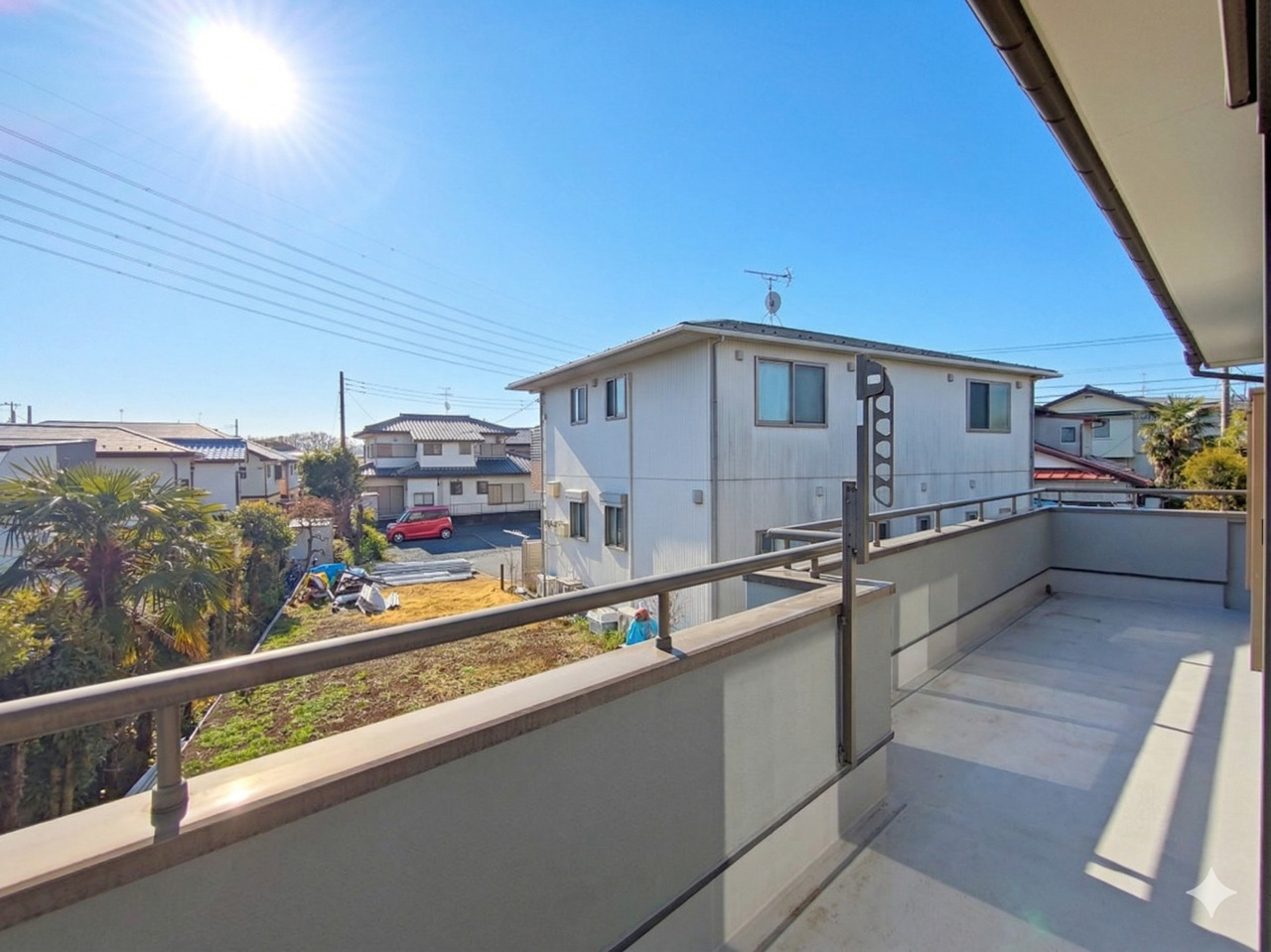 南向きで陽当たり良好なバルコニー。お洗濯物がすぐに乾きます。