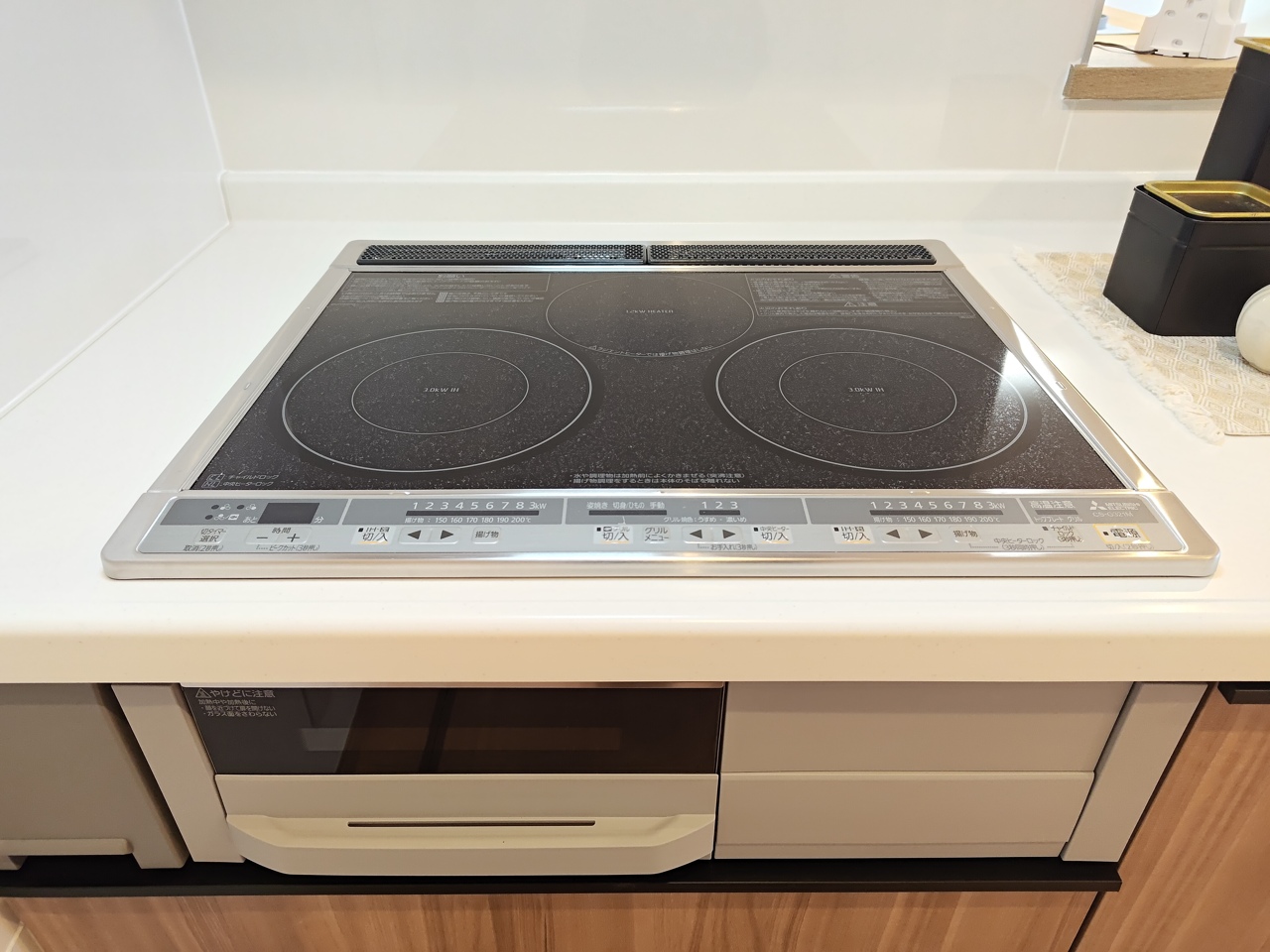 新品のIHクッキングヒーター。 3口あれば、大きなフライパンを使いながら横でお湯を沸かせます!