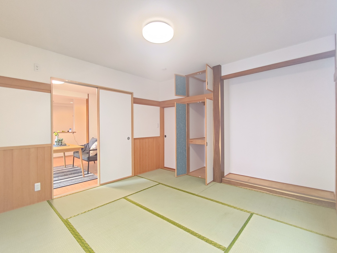 【和室/約8帖】 リビング横の和室は広々8帖! 畳は表替え済みで、綺麗に仕上がっております。
