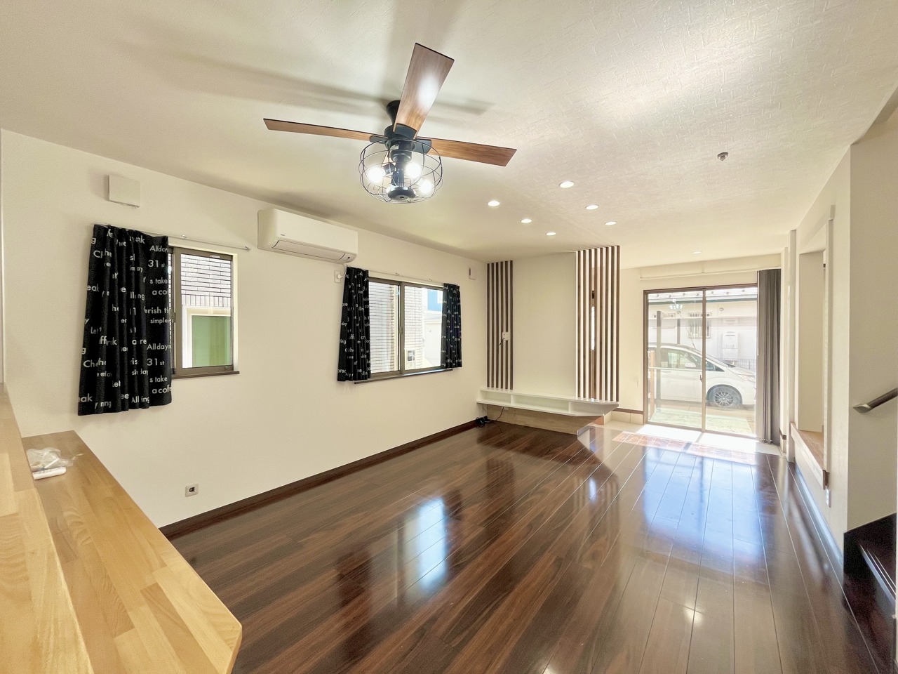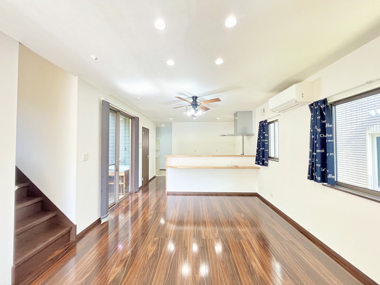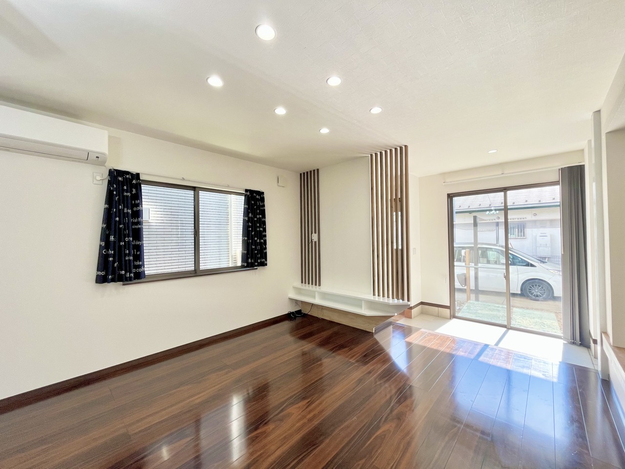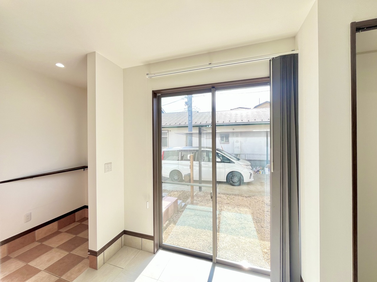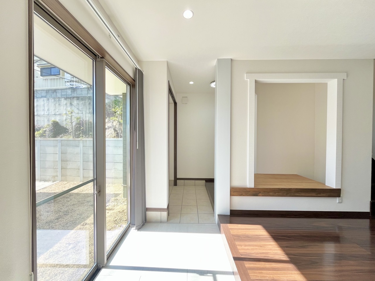 大きな開口部から明るい光が差し込む、日中の室内の明るさがこの部屋の魅力です。