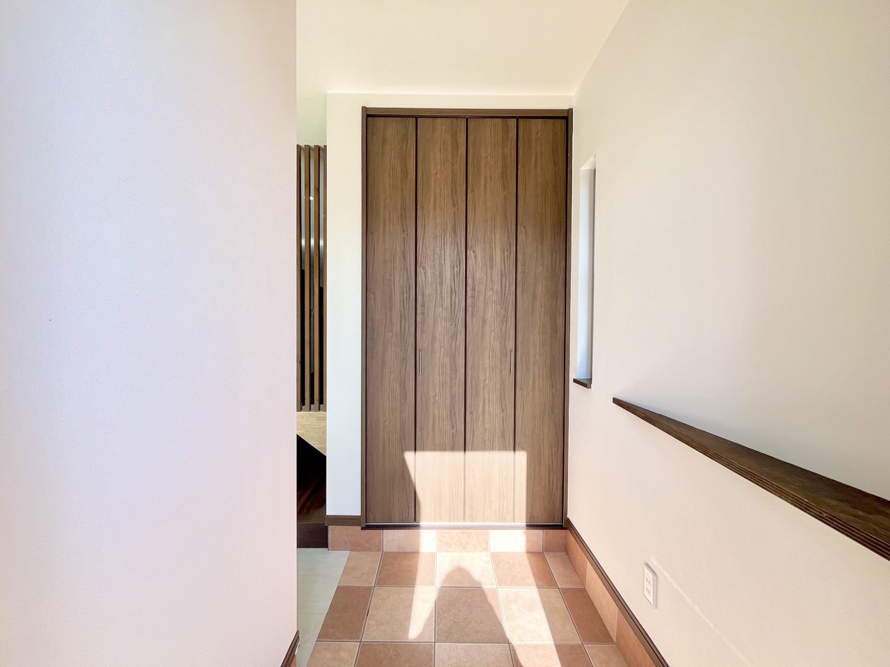明るく開放的な玄関、靴の脱ぎ履きもしやすく、収納も豊富でご家族皆様の靴をスッキリ収納できます。