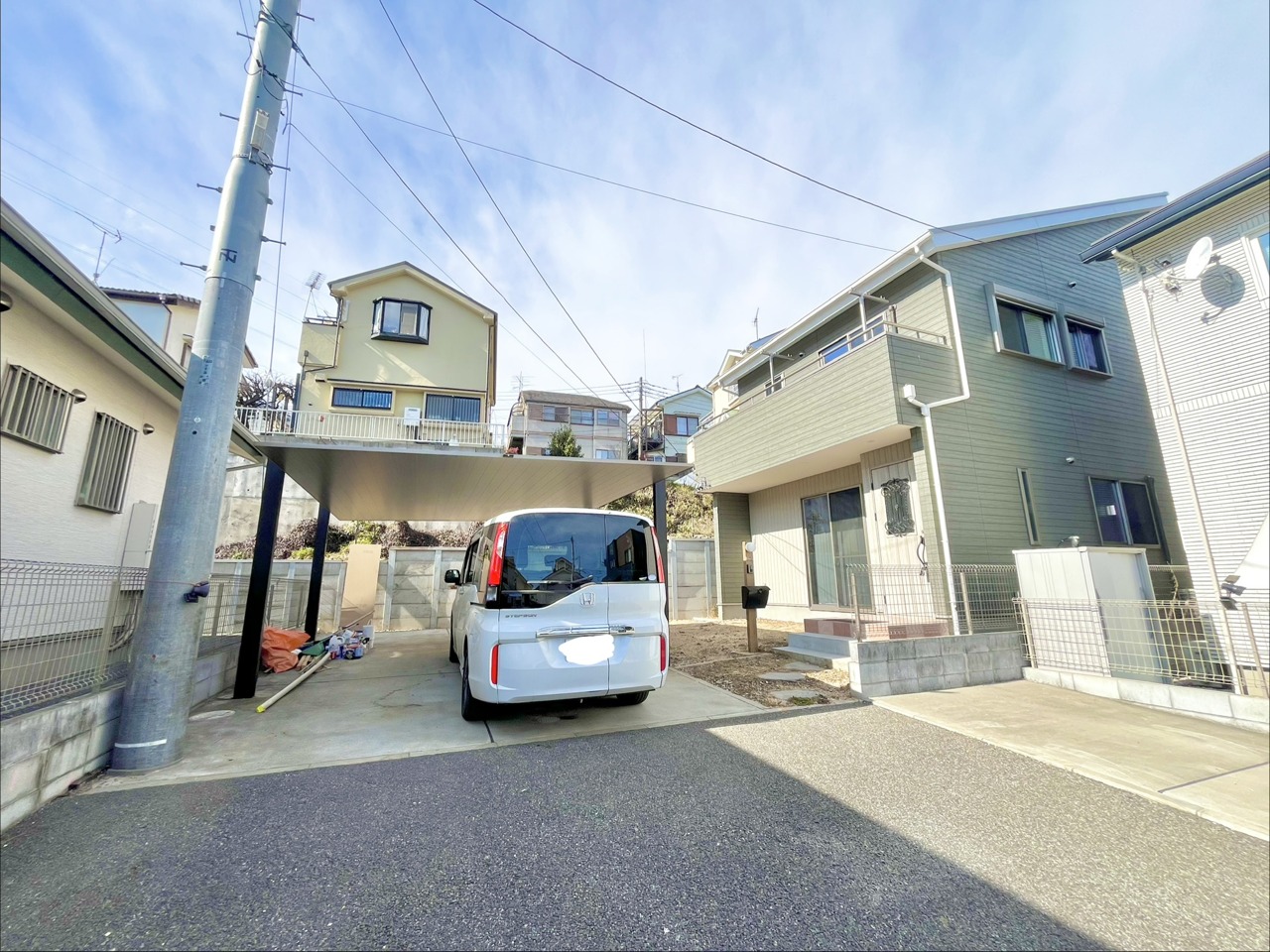 前面道路は広く、駐車がしやすいです。駐車スペース2台分ございます。