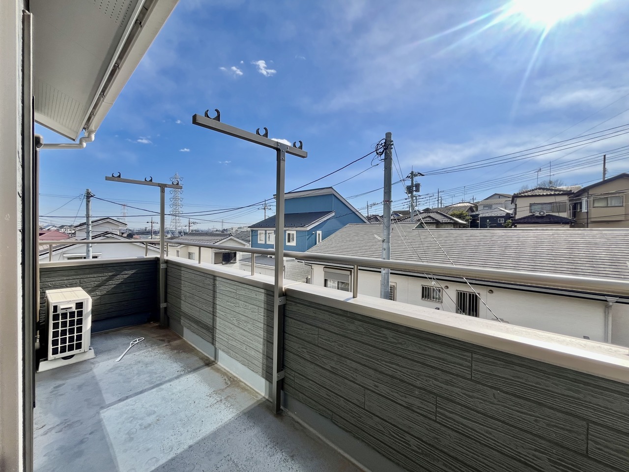 南側のお部屋から出入りできる、奥行きのあるワイドバルコニー。心地よい陽射しと暖かな風を楽しむことが出来ます。