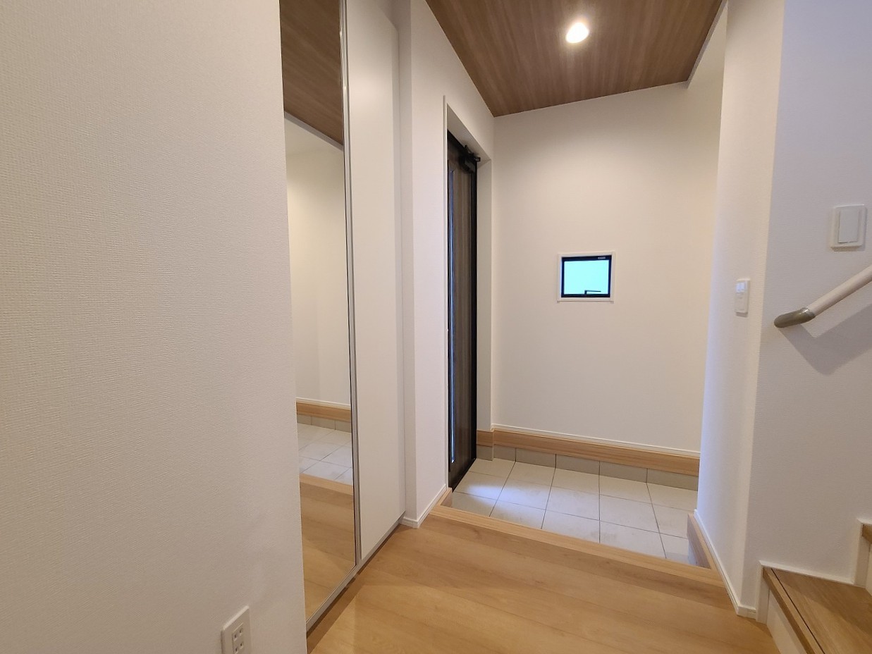 明るく開放的な玄関、靴の脱ぎ履きもしやすく、収納も豊富でご家族皆様の靴をスッキリ収納できます。