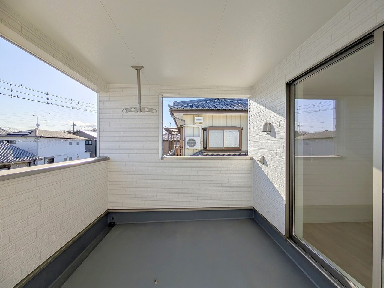 いつも忙しいご家庭に嬉しいインナーバルコニーの家。ゆとりの広さを確保したバルコニーはお布団を干すのも、この広さならラクラク。