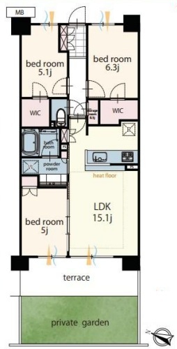 | 間取 | 3LDK (LDK15.1帖、洋室6.3帖、洋室5.1帖、洋室5帖) | ||