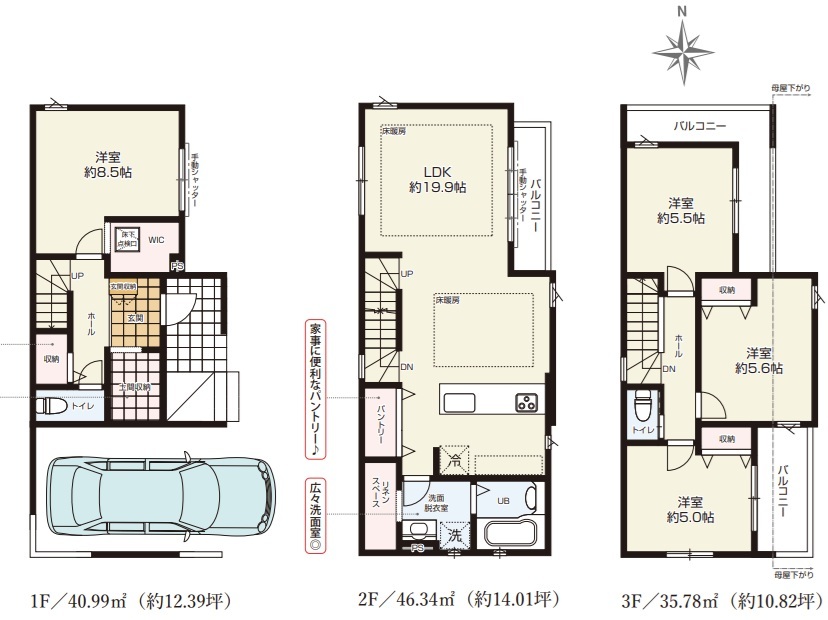 | 建物面積 | 123.11m² 実測 (建物面積に車庫部分14.49平米含む) | ||