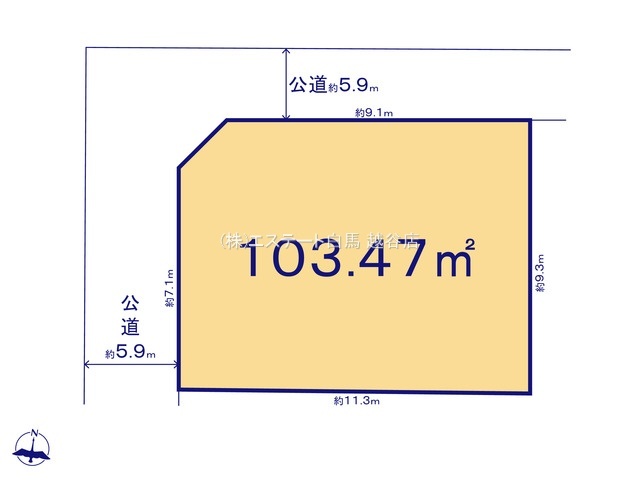 | 権利種類 | 所有権 | 接道 | 北側5.9M公道に9.1M接道 西側5.9M公道に7.1M接道 |