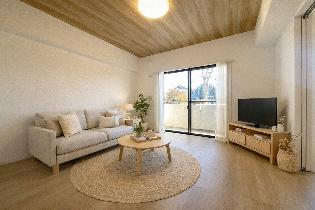 ※本画像はCGによる家具配置イメージです。家具・小物等は販売価格に含まれません。 南側に大きな窓を配置、明るいリビングが出来ました。
