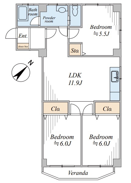 | 間取 | 3LDK (LDK11.9帖、洋室6.0帖、洋室6.0帖、洋室5.5帖) | ||