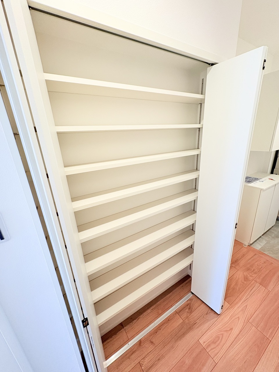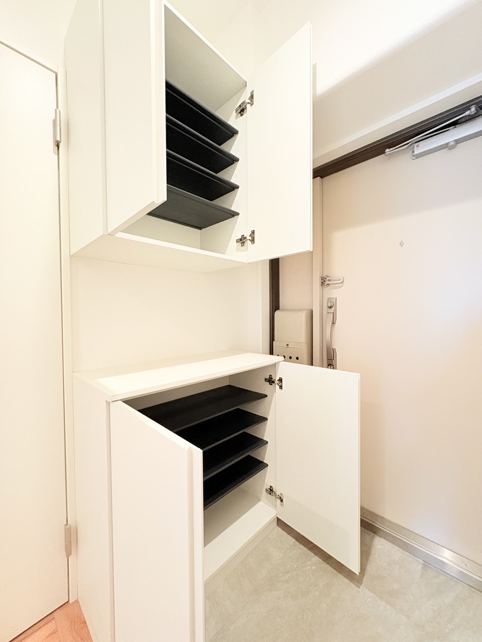 廊下や玄関の共用部には、こんな収納があるととっても便利です。
