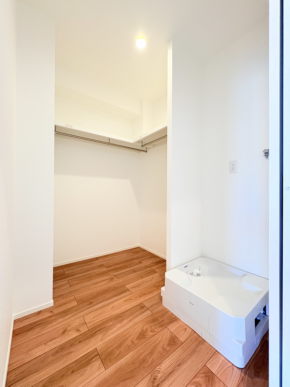 ウオーキングクローゼットとランドリースペースのある、便利なサービスルーム。
