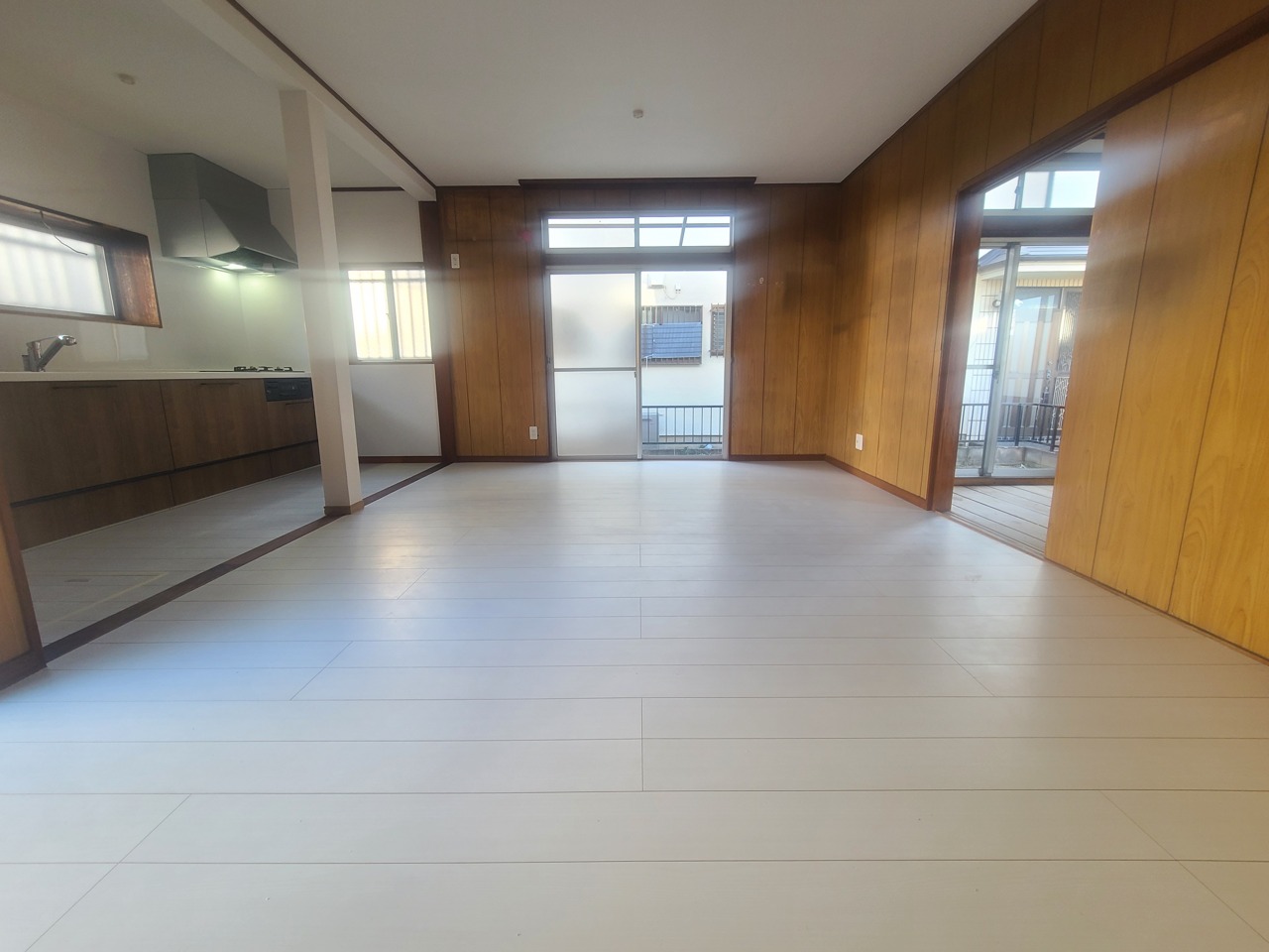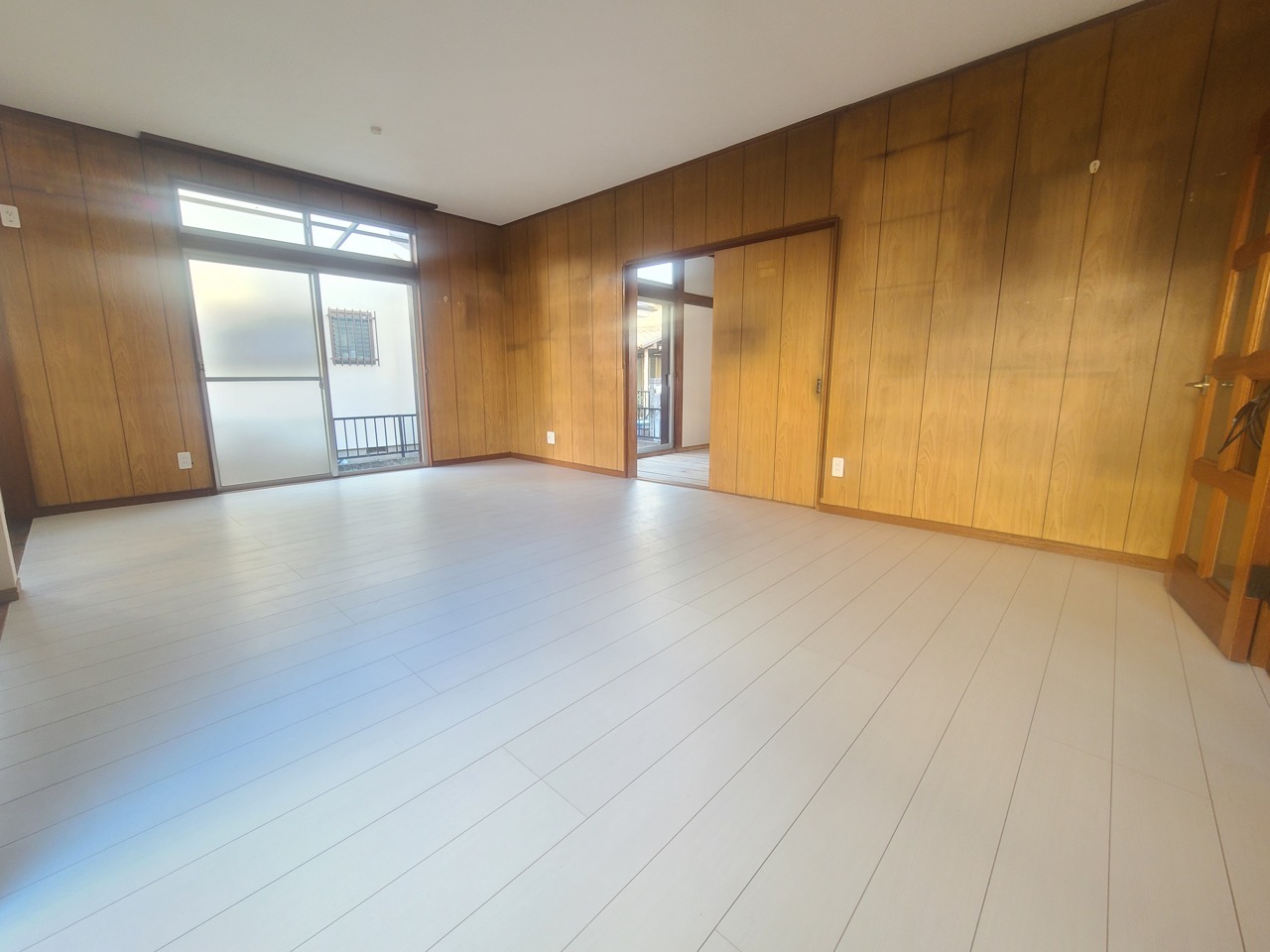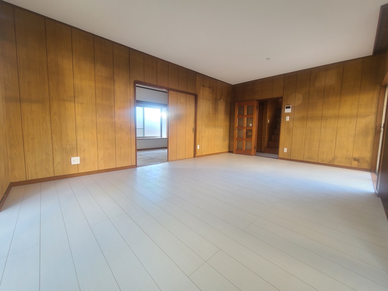 心地よい木目調と白が調和する、広々とした空間。
