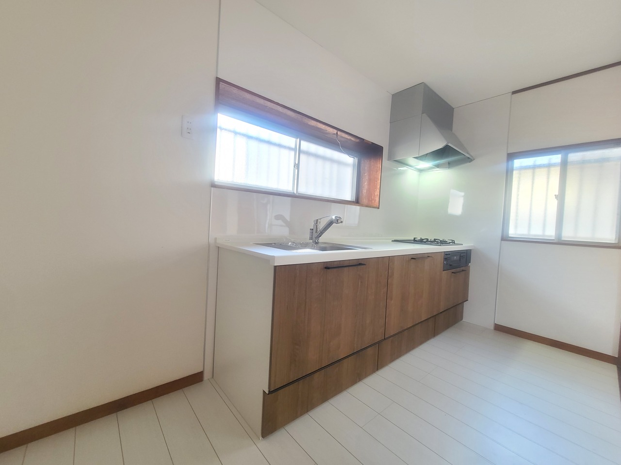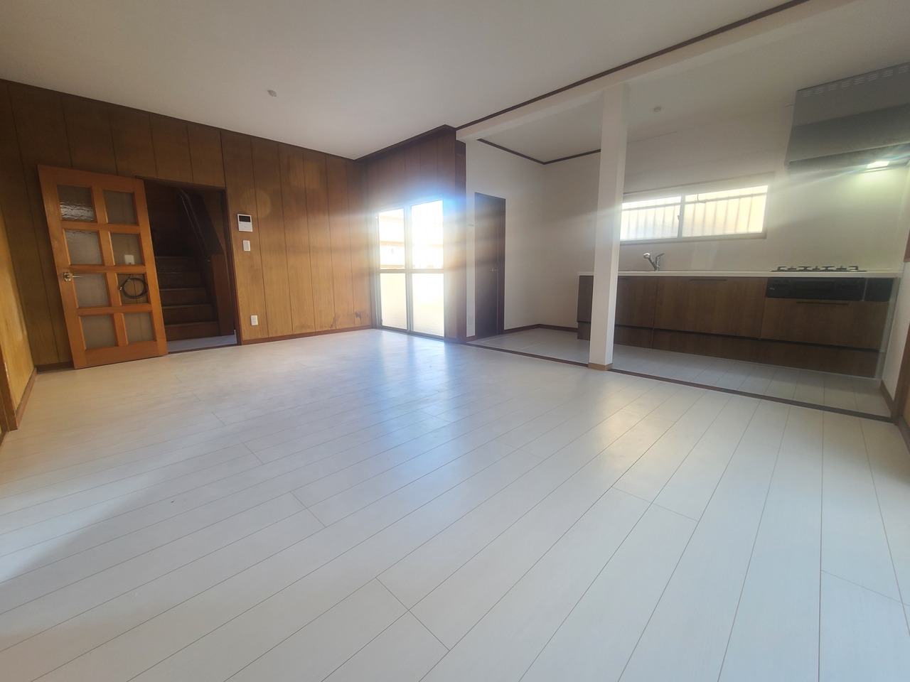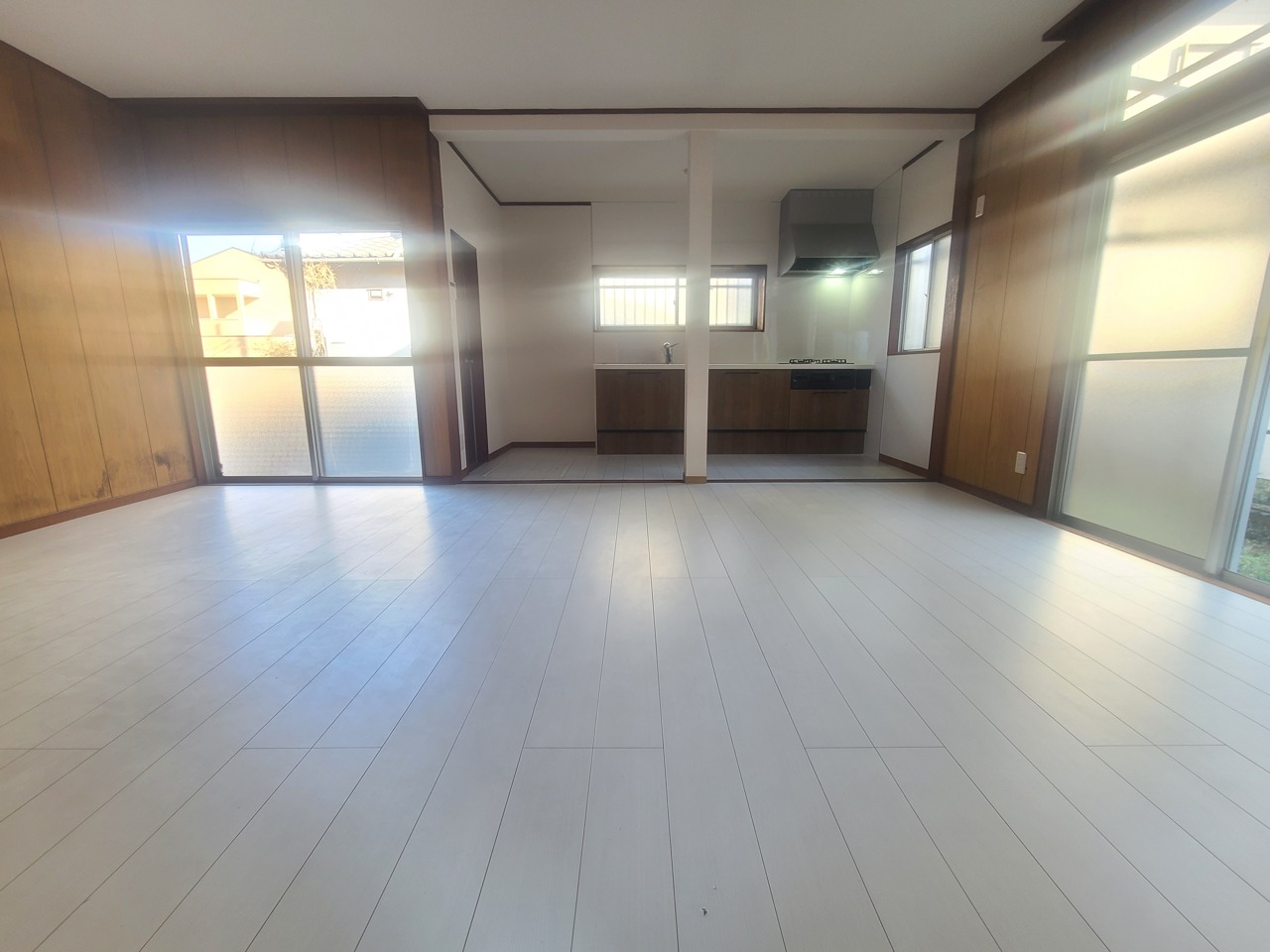心地よい木目調と白が調和する、広々とした空間。