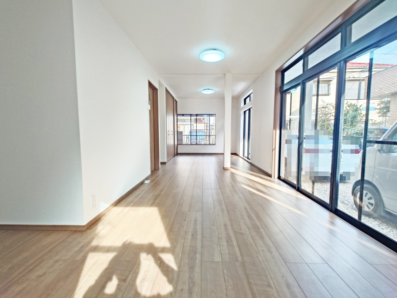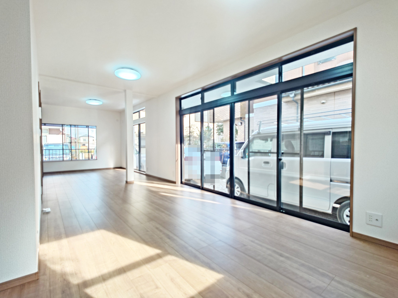 大きな開口部から明るい光が差し込むリビング。日中の室内の明るさがこの部屋の魅力です。