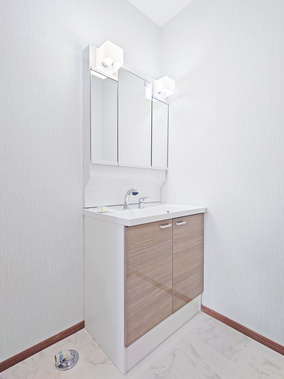 お出かけ前の身だしなみに一歩差がつく三面鏡。ミラー裏にはたっぷり収納もございます。