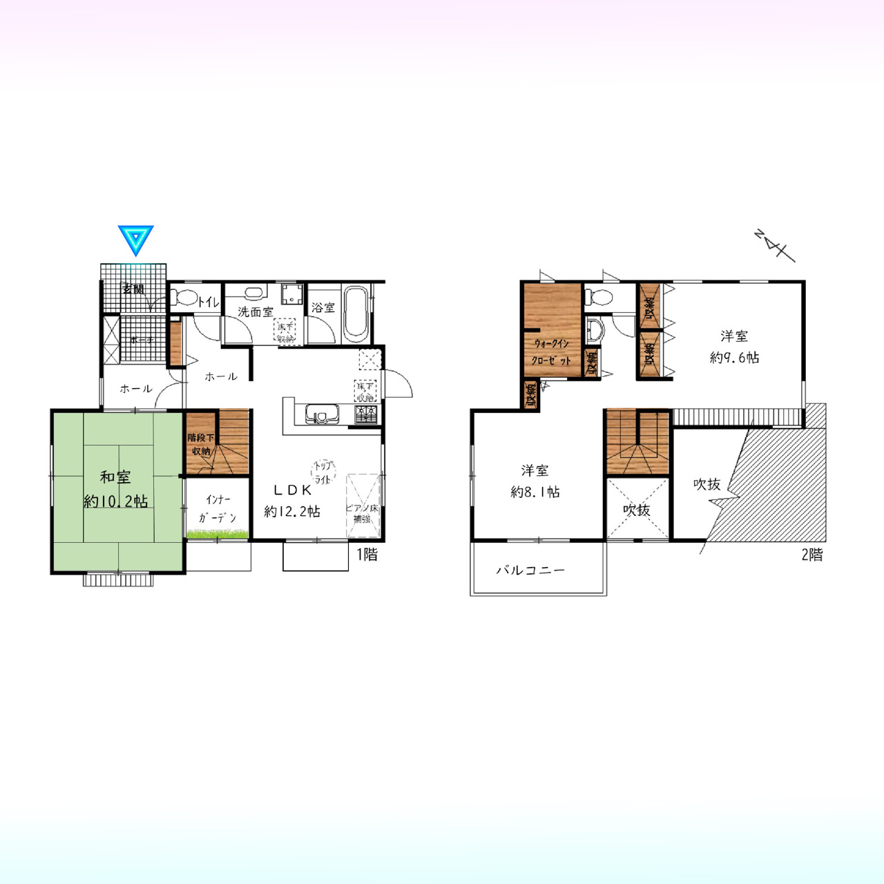 | 間取 | 3LDK (LDK12.2帖、和室10.2帖、洋室9.6帖、洋室8.1帖) | ||