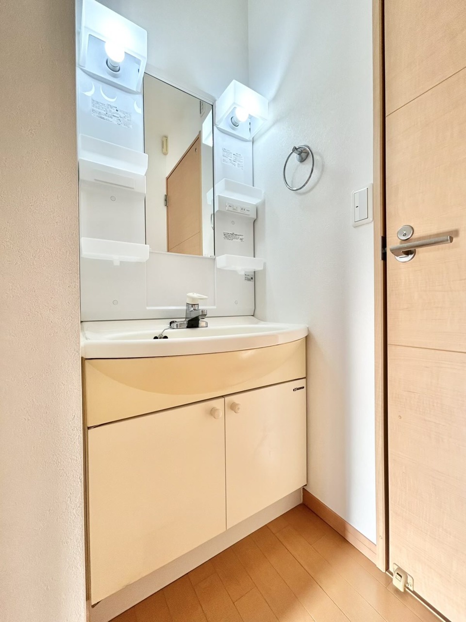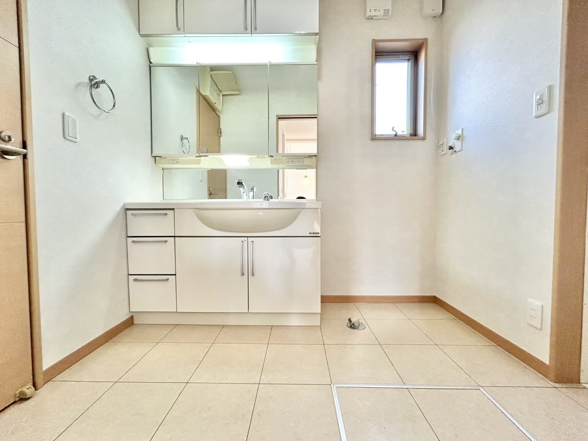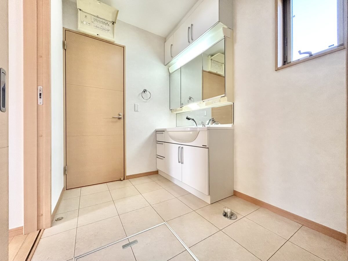 洗面室にはうれしいリネン収納があります。