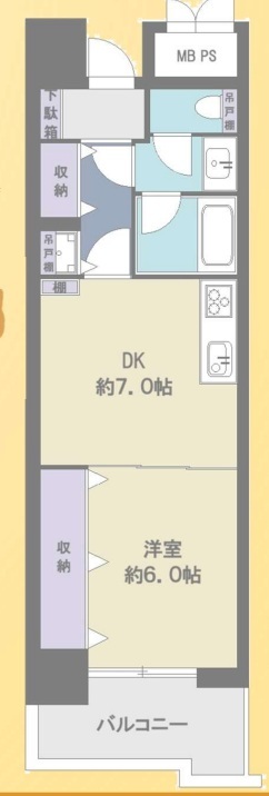 | 間取 | 1DK+アルコープ1.14平米 (DK7.0帖、洋室6.0帖) | ||