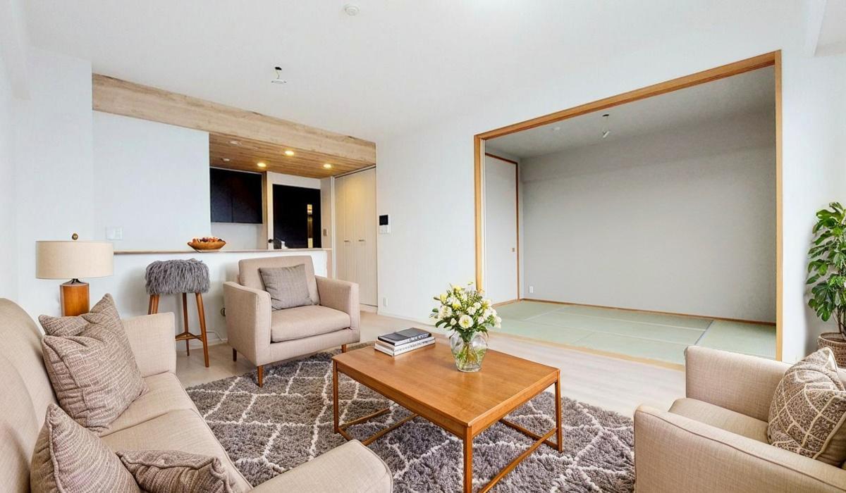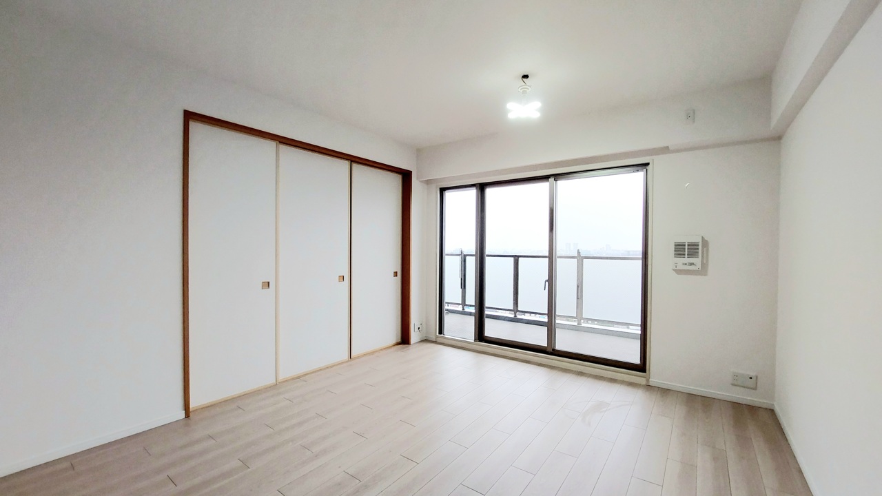 大きな開口部から明るい光が差し込む、日中の室内の明るさがこの部屋の魅力です。