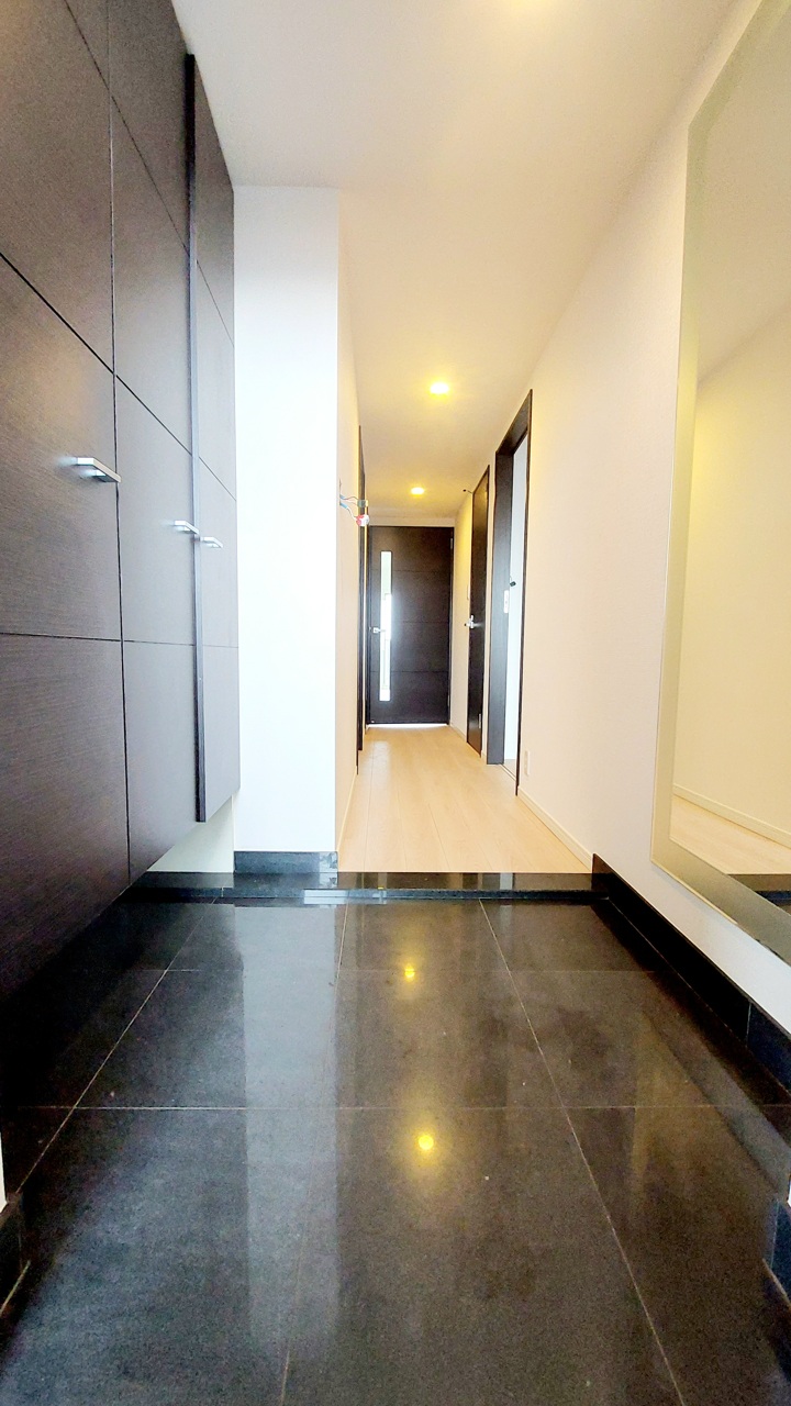 明るく開放的な玄関、靴の脱ぎ履きもしやすく、収納も豊富でご家族皆様の靴をスッキリ収納できます。