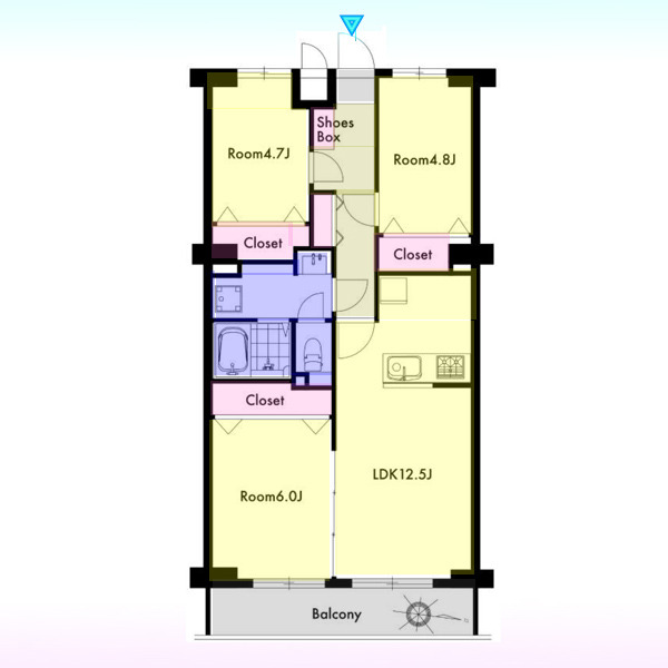 | 間取 | 3LDK (LDK12.5帖、洋室6帖、洋室4.8帖、洋室4.7帖) | ||