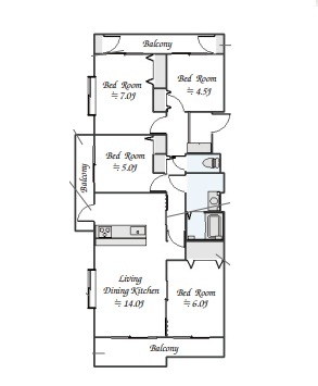 | 間取 | 4LDK (LDK14帖、洋室7帖、洋室6帖、洋室5帖、洋室4.5帖) | ||