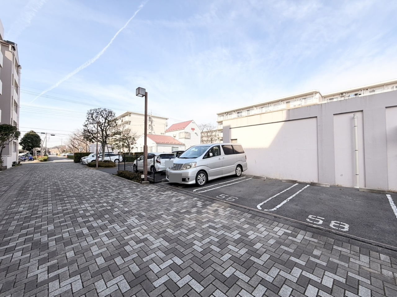 青空の下、整然と並ぶ駐車スペースは、毎日の移動を快適にサポートします。